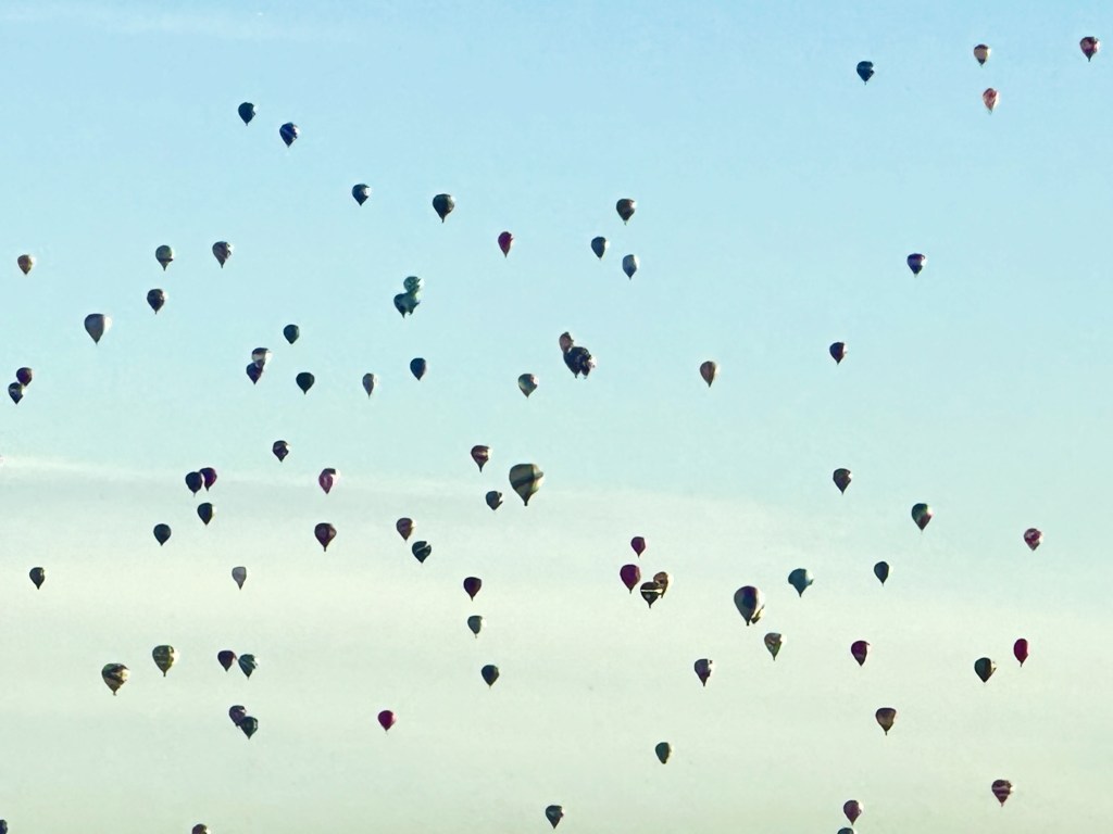 My original plan was to wake before dawn on Saturday to see the balloons in what is known as a “mass ascension” which may include joining a cult, but my margaritas from the night before helped me adjust the plan. I watched the ascension from my hotel room window and it was beautiful. Hundreds of balloons dotting the sky and crossing the Sandia Mountains.