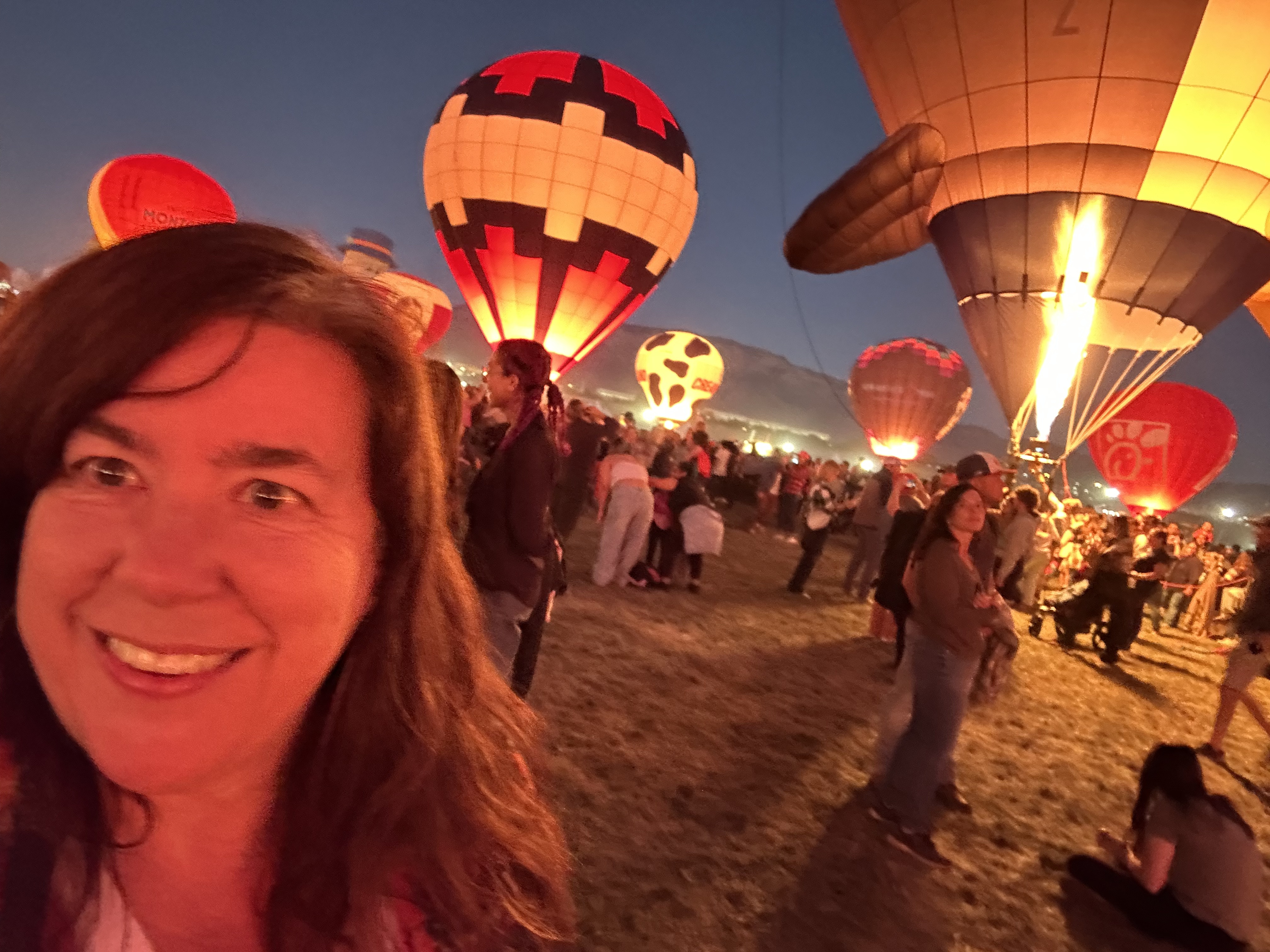 But wait – there’s more. After wolfing down the doggie bag of shrimp tacos from the night before, I jumped on a shuttle to head to the field of balloons. The hotel had arranged a “party limo” to take folks throughout the day and I found myself riding with two lawyers from Forest Hills, Queens. “Oh, I go to Forest Hills a lot,” I shared, because my friend Angela lives in the building abutting the concert stadium and gets a lot of free tickets. Turns out they also live in that complex and also go to a lot of concerts, but their absolute most favorite concert of all time – James Taylor. “Funny you should say that,” I said…..Where ever I go, JT brings people together.