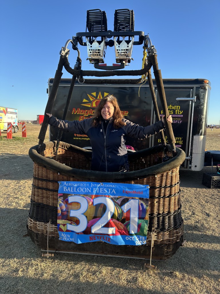 This morning, I did get up at stupid early o’clock and got on the party limo in the dark to head back to the field for the final mass ascension of this year’s festival. It was cold. So, so cold and my little keds offered little protection for my toes, which I was sure were turning blue. I wondered the dark for a while and grabbed a hot chocolate and Indian fry bread (something I’d considered making for New Mexico in my cooking trip around the country.). 7am came and went without any balloons being inflated. The crowds thinned. A red devil balloon slowly rose and quickly deflated. I asked one of the balloon handlers what was happening – apparently the wind was too much and the lift was cancelled. We talked for about 30 minutes about how one takes up ballooning as a hobby (I mean, if you think skiing is expensive…), and he introduced me to his brothers, all dressed in pink jumpsuits. Their parents had taken them up in a balloon decades earlier and they scrimped and saved and worked with other balloon teams, til they could buy their own. Now they all work full time as balloon guides. “Get in,” he said, hoisting me into the tiny basket. I’ve never actually thought about taking a balloon ride, but now I might give it. a try. He handed me his card and said they’d be happy to train me as a volunteer balloon handler for next year’s fest, and I might just do it.