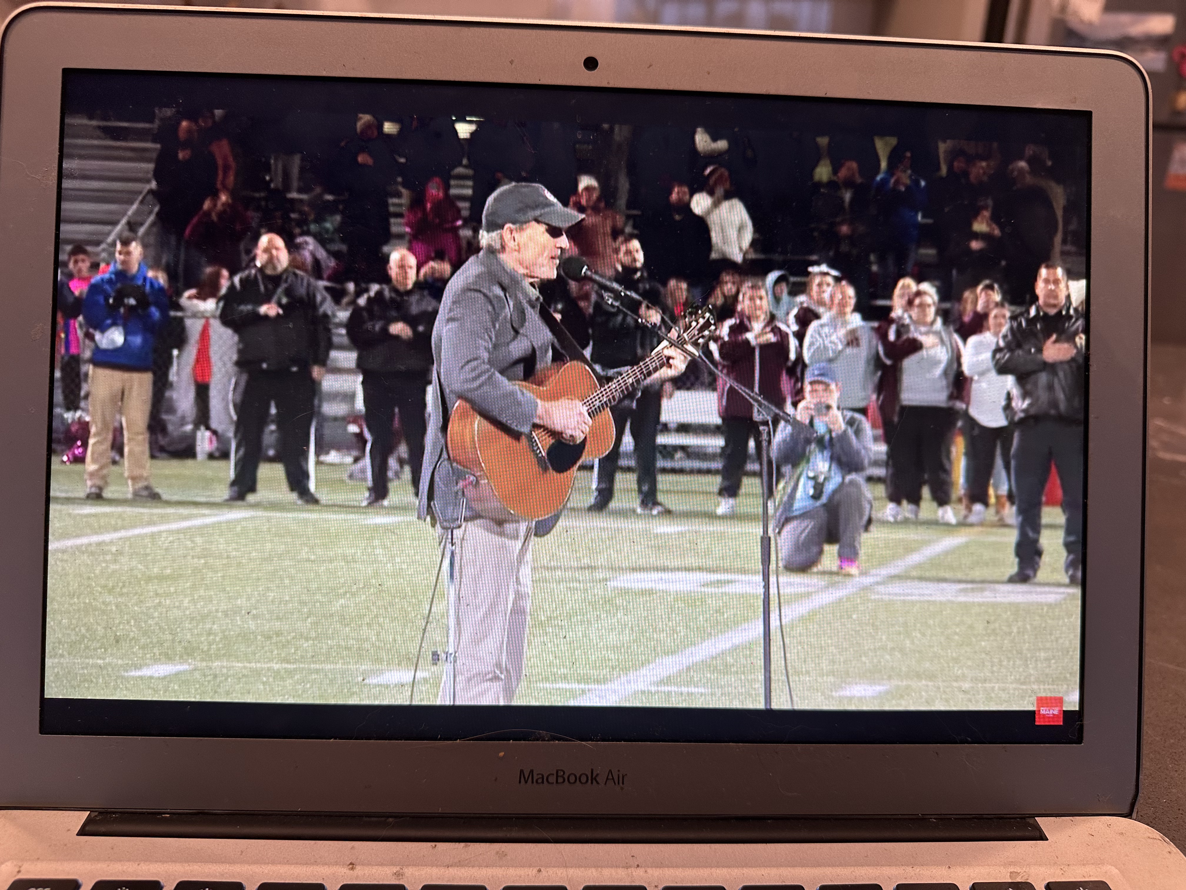 This season of joy started with shocking sadness. In addition to the horrific violence in the middle east, my hometown of Lewiston, Maine was the latest American community rocked by gun violence. In a reminder that most people are good, with little prompting my wonderful sometime employer traveled to north to perform at the Lewiston High School’s football game with their biggest rival from across the river, Auburn (I actually grew up in Auburn, but they’re one and the same in these cases.) Seeing JT with the Lewiston High School principal, my dear childhood friend Jon, before taking the field to sing the anthem had me not just teary, but actually weeping with gratitude and love.