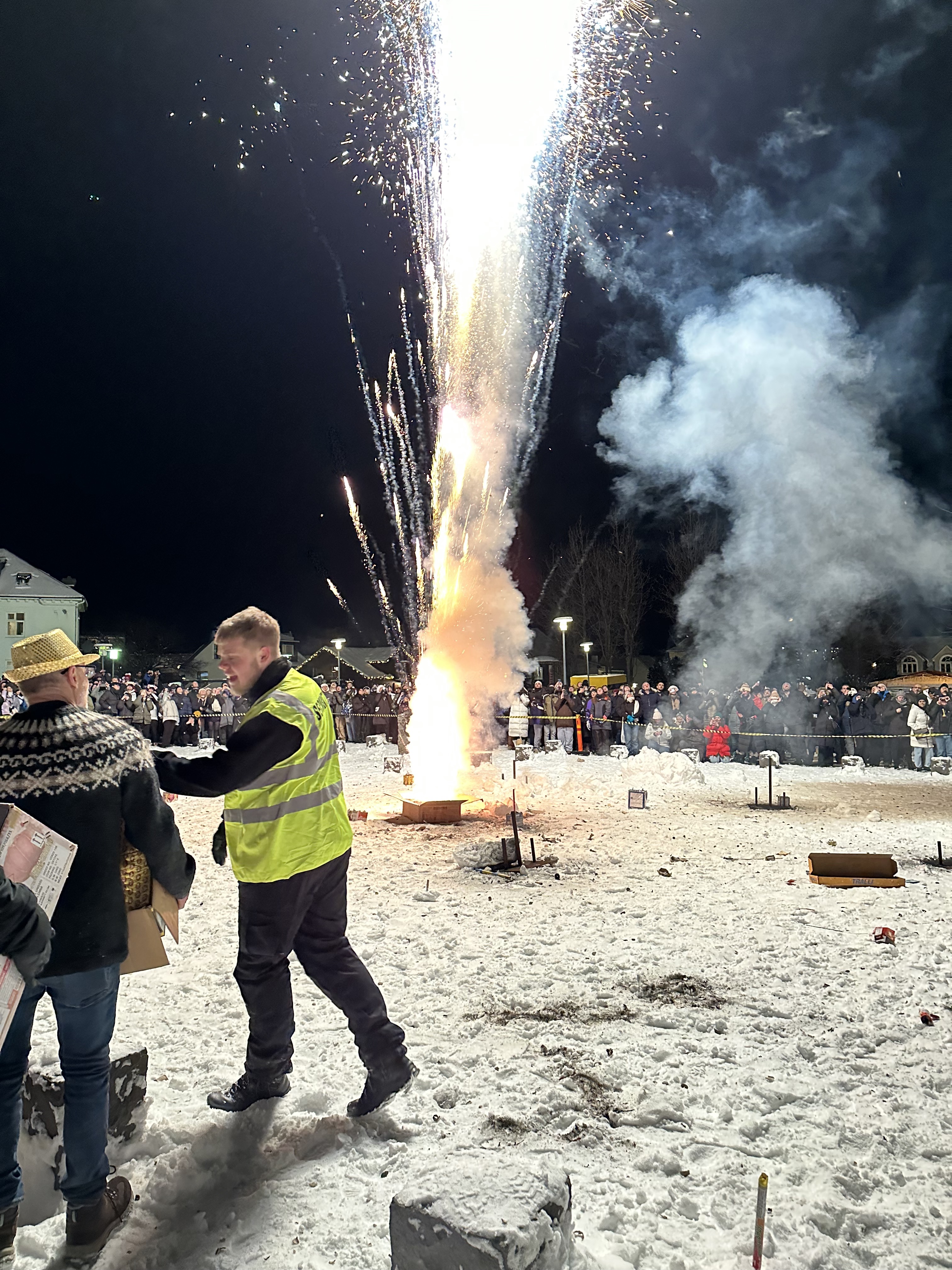 Many a small child was in there with a torch the likes of which I’d be nervous holding. As we started chatting with a nice Welsh couple as enthralled by the experience as we were, a young Nordic girl handed the husband a sparkler. He took two and handed one to me. Several minutes later she wandered back and he asked her for a light. “That’s what I was hoping you’d offer me,” she said “but you took the sparkler instead.” We sheepishly returned them as my travel companion Cassie and his wife howled with laughter.