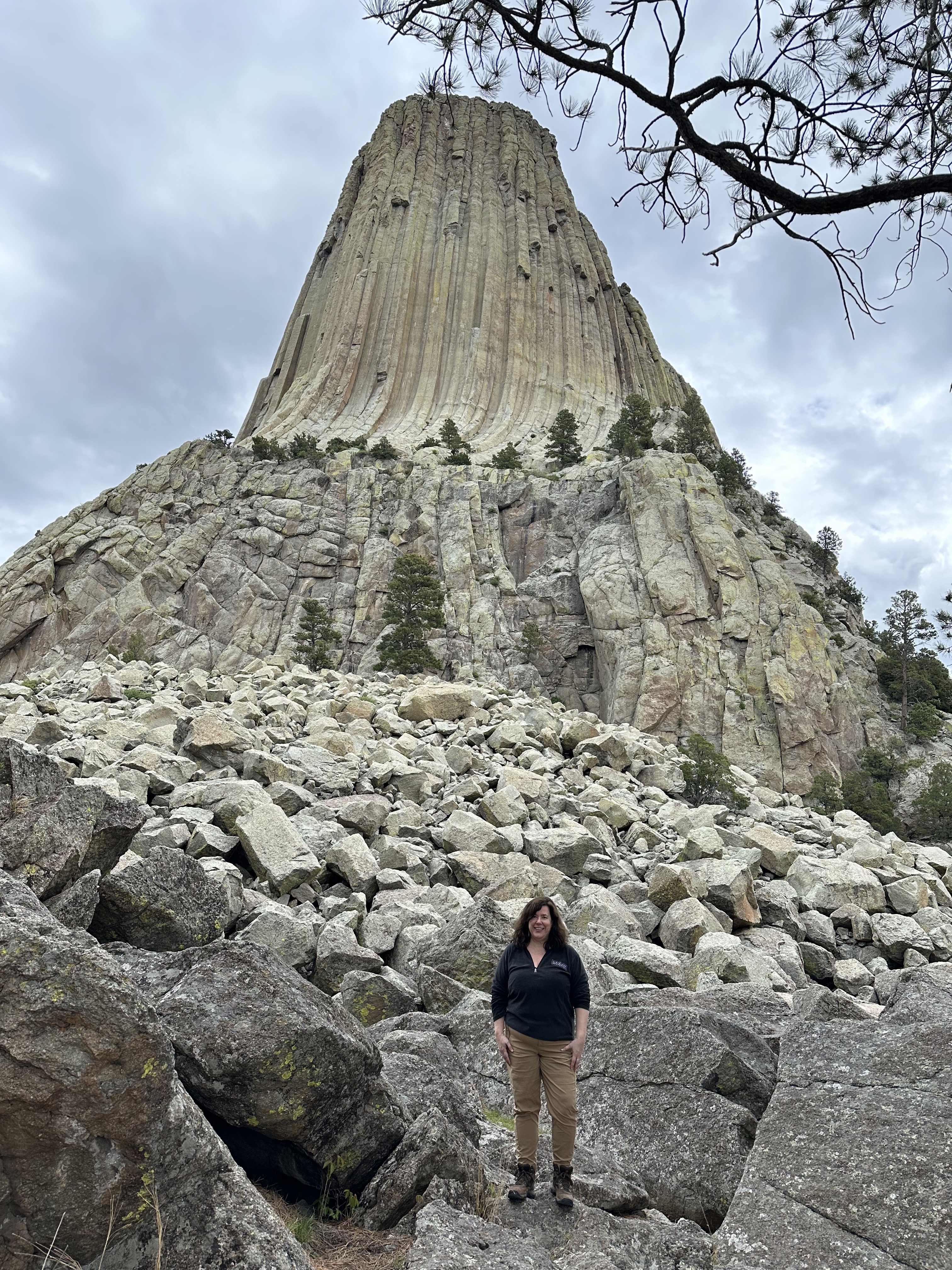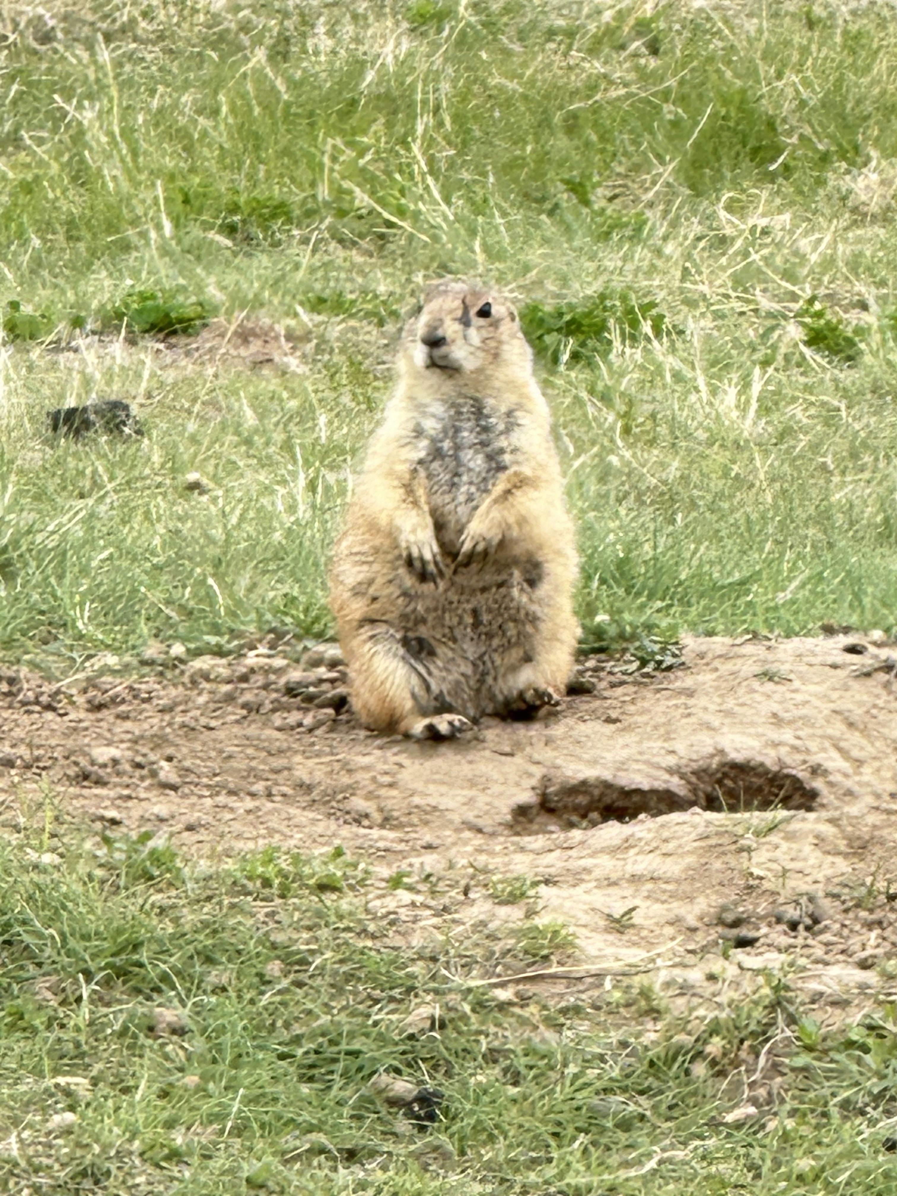 Day two and the chance to see the natural site I’ve most wanted to my whole life. I don’t know why – but I’ve always wanted to see Devil’s Tower, Wyoming. And now I have and it is even better than I expected. On the way I stopped at the exact mid-point of America, Belle Fourche, SD, and got a remarkably good cup of coffee in Aladdin, WY, population 15. Devil’s Tower is not what I expected, though I don’t know what I expected, but it is breathtaking. I did the 2 mile trek around the base (to climb on the tower requires a permit – and skill). From every angle I was in awe. I wanted to stay there forever and I did stay for far longer than made sense, but I was so overcome. On the way out, I passed a field full of prairie dogs and I had to stops and watch their antics for a while. It was all joy.