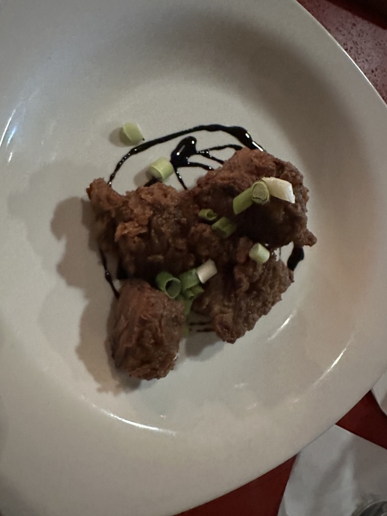 For dinner, it was time to see how I did in my cooking for South Dakota. I had to go back and look and I cooked something called chislic, which is basically fried meat. Interestingly for something I’d never heard of before, in my research on SD, I learned it was something you’d find at every bar or restaurant. My assessment was that it was tasty but a waste of steak. I was a little nervous I wouldn’t be able to find a place to order it, but indeed, it was on just about every menu. I picked a nice looking restaurant and ordered it with an old fashioned. I did mine slightly wrong. I did not dust mine with corn starch before frying it, which definitely made it better, but in the end, I hold to my initial assessment. It is a waste of good steak.