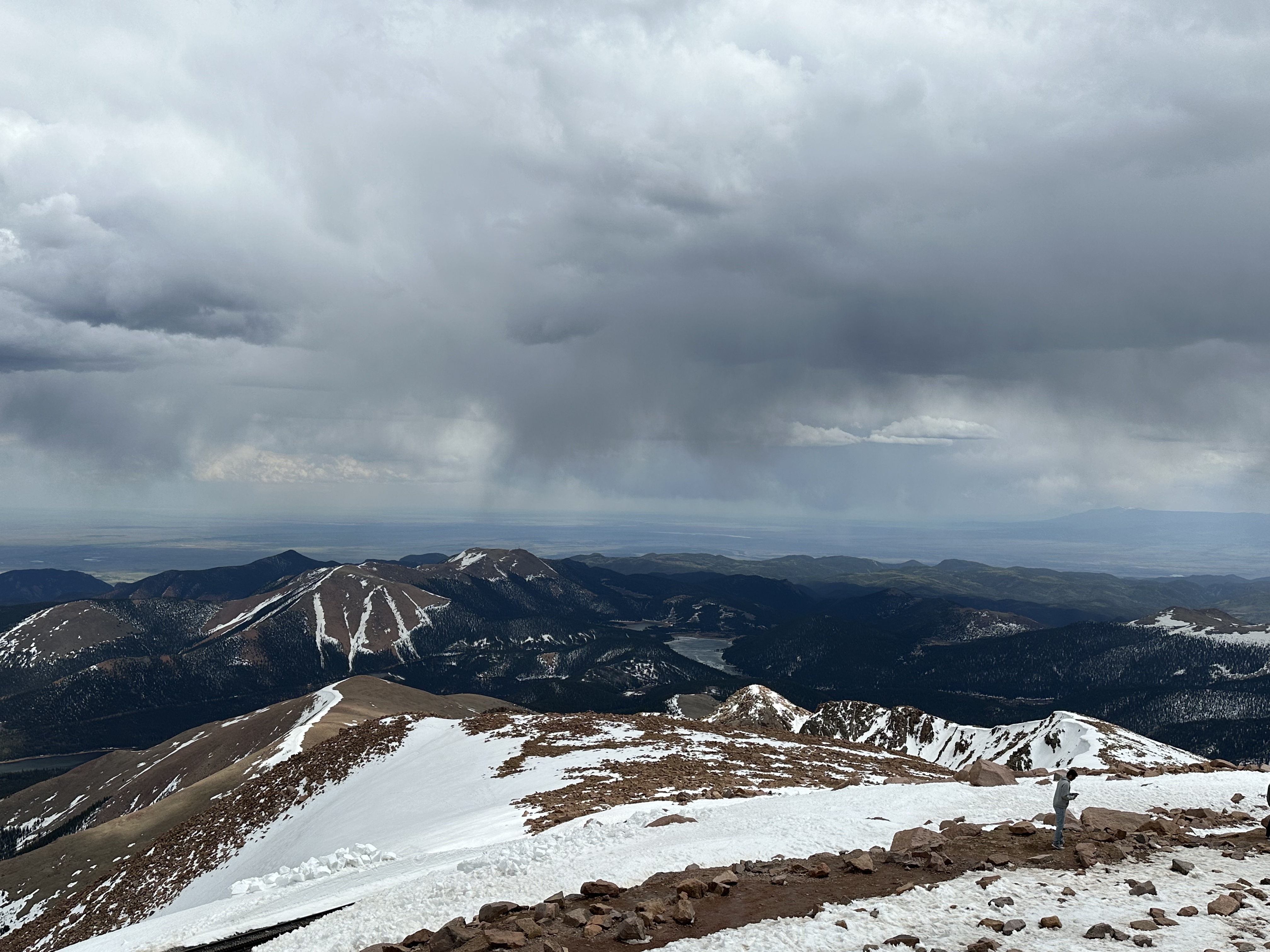 ON Saturday, I ventured out to the mountains. We headed up Pike’s Peak, the mountain that inspired the song American the Beautiful and one of the “Fourteeners”, mountains higher than 14,000 feet. Pike’s Peak is one of the few that has a roadway that allows you to drive all the way to the top, which we needed becuase I’m not sure I have it in my to climb 14,000 feet at the moment. I am very good in thin air, however, so I wanted to stay up there far longer than my travel companions. We did explore some of the high altitude trails and reveled in the deep snow. The universe provided and we saw a spectacular lightning show on our treacherous drive down. The whole thing was just amazing.