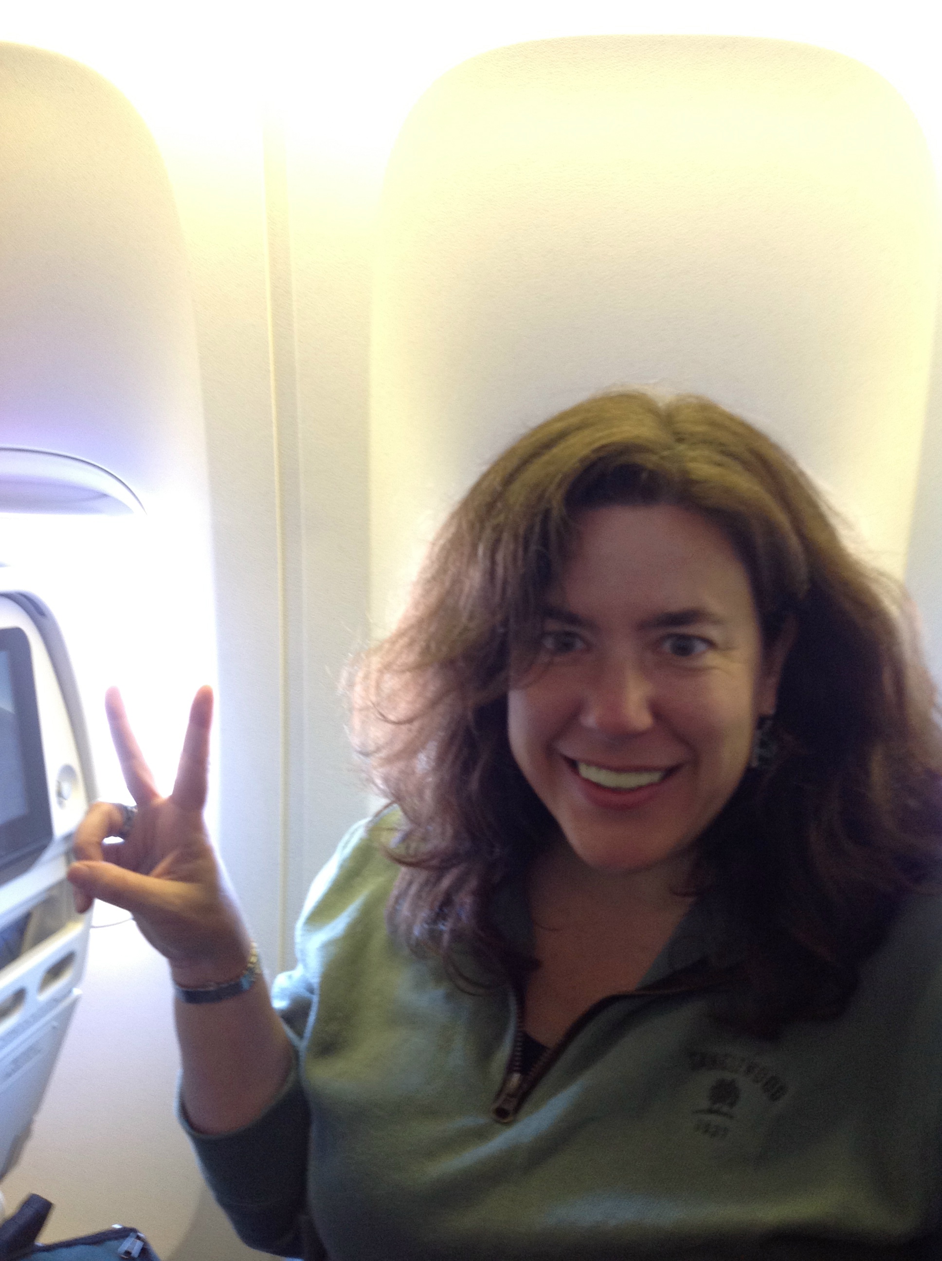 It took every bit of positive thinking I could muster but I managed to conjure my aunt’s voice in my head instructing me to “find good and praise it.”  Really what have I got to complain about.  I have a dozen movies and books on my iPad, a charging dock at the seat, and Barbara and Cy, the lovely couple from North Carolina blocking me from the aisle and easy bathroom access, could not have been nicer (though their bionic camel bladders baffled me, given they have at least 20 years on me.).