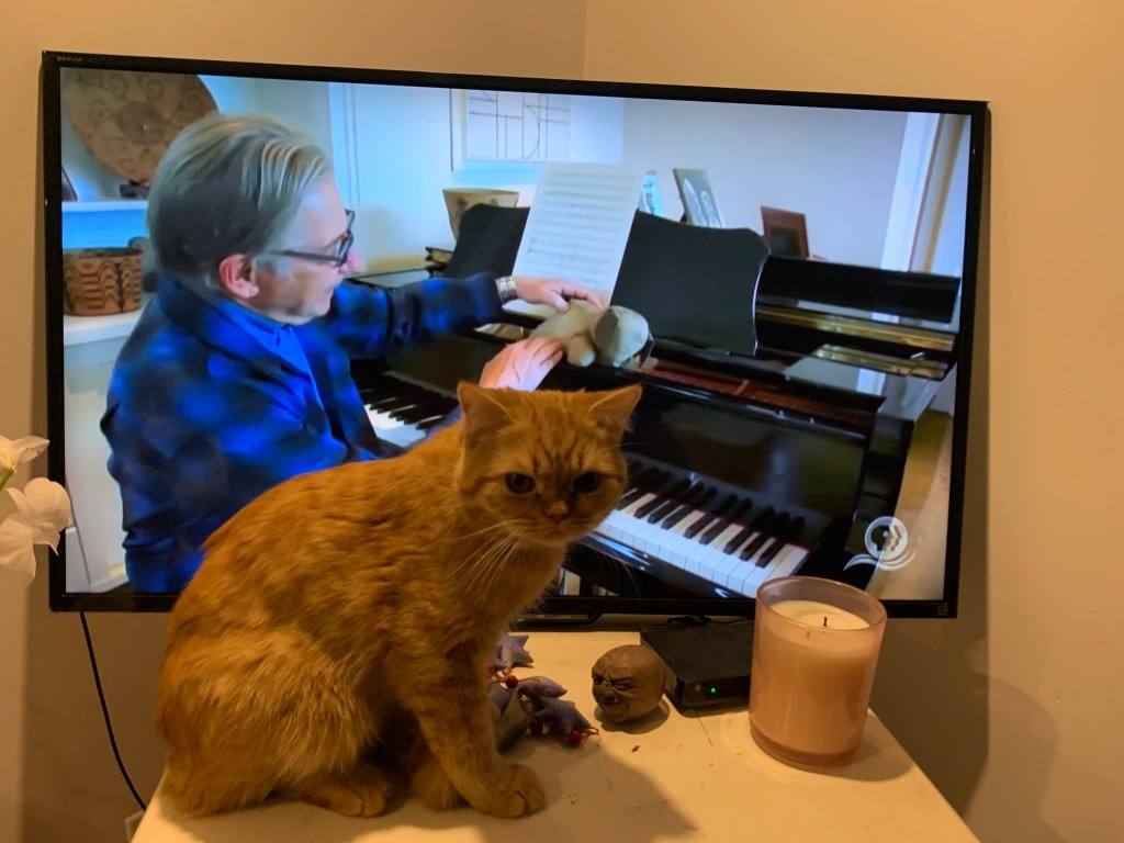 It was super tasty, but actually, I think that beef prime rib, beef might be better than the leaner buffalo. There were no yummy pan drippings from this guy. I had considered making Yorkshire puddings a whole roast dinner, but in the end, I just had a nice thick slice of meat and the cat and I watched a documentary about my boss, MTT.